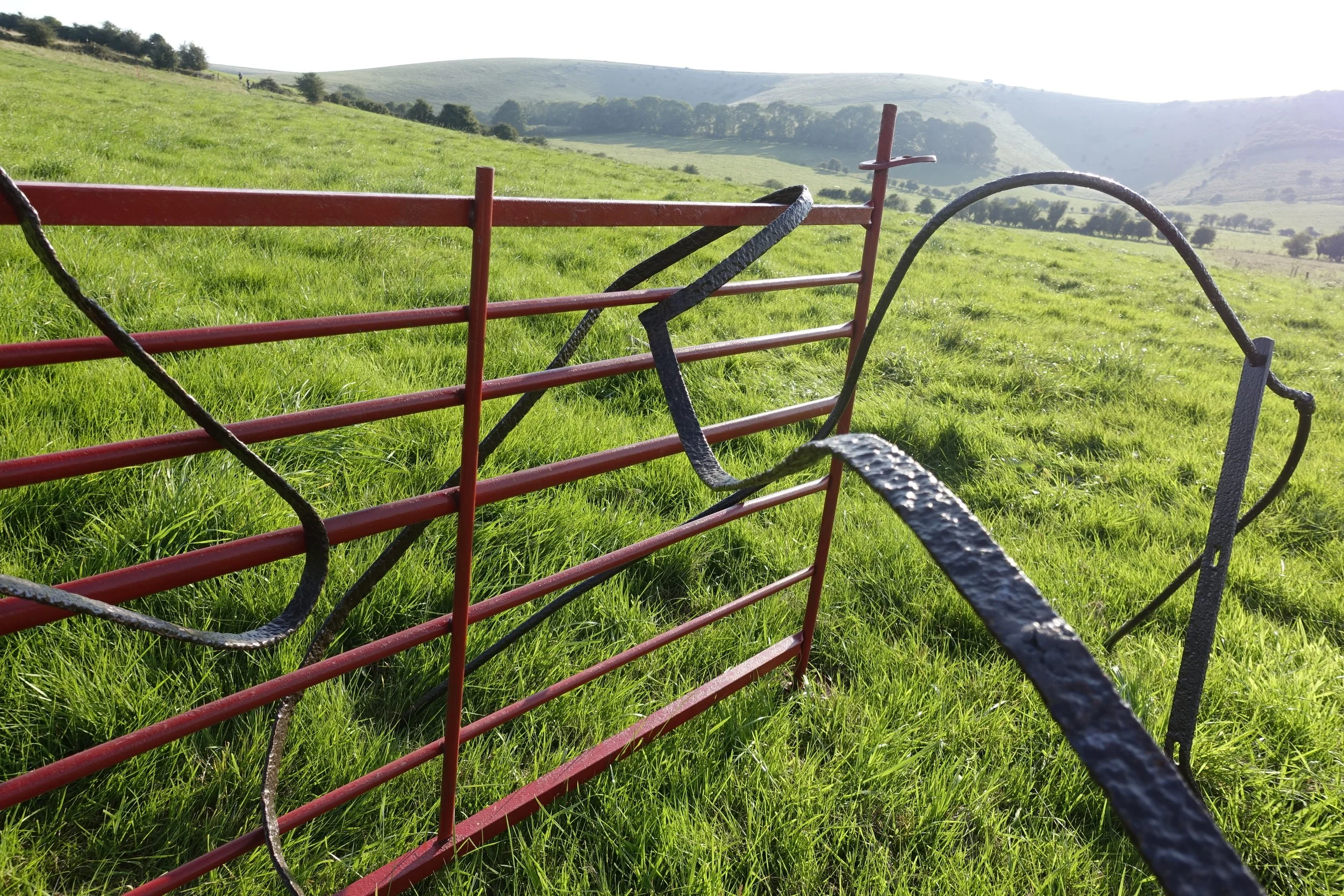 Coup d'Etat, 2024, 100x156x8cm, reclaimed farm gate and fence parts. The fence rebels against the authority of the gate.